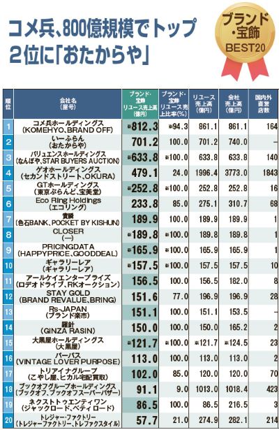 2023.08.15 Release リサイクル通信 2022年度売上ランキング掲載のお知らせ 株式会社リフォーム産業新聞社が2023年8月10日に発行されました「リサイクル通信」にて、2022年度「ブランド・宝飾品」の売上ランキングで、当社が第5位であったと発表されました。 一覧へ