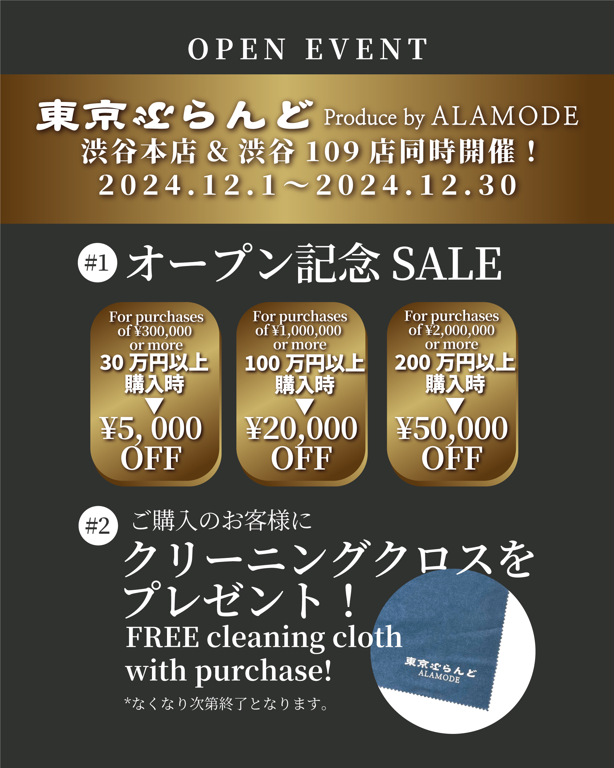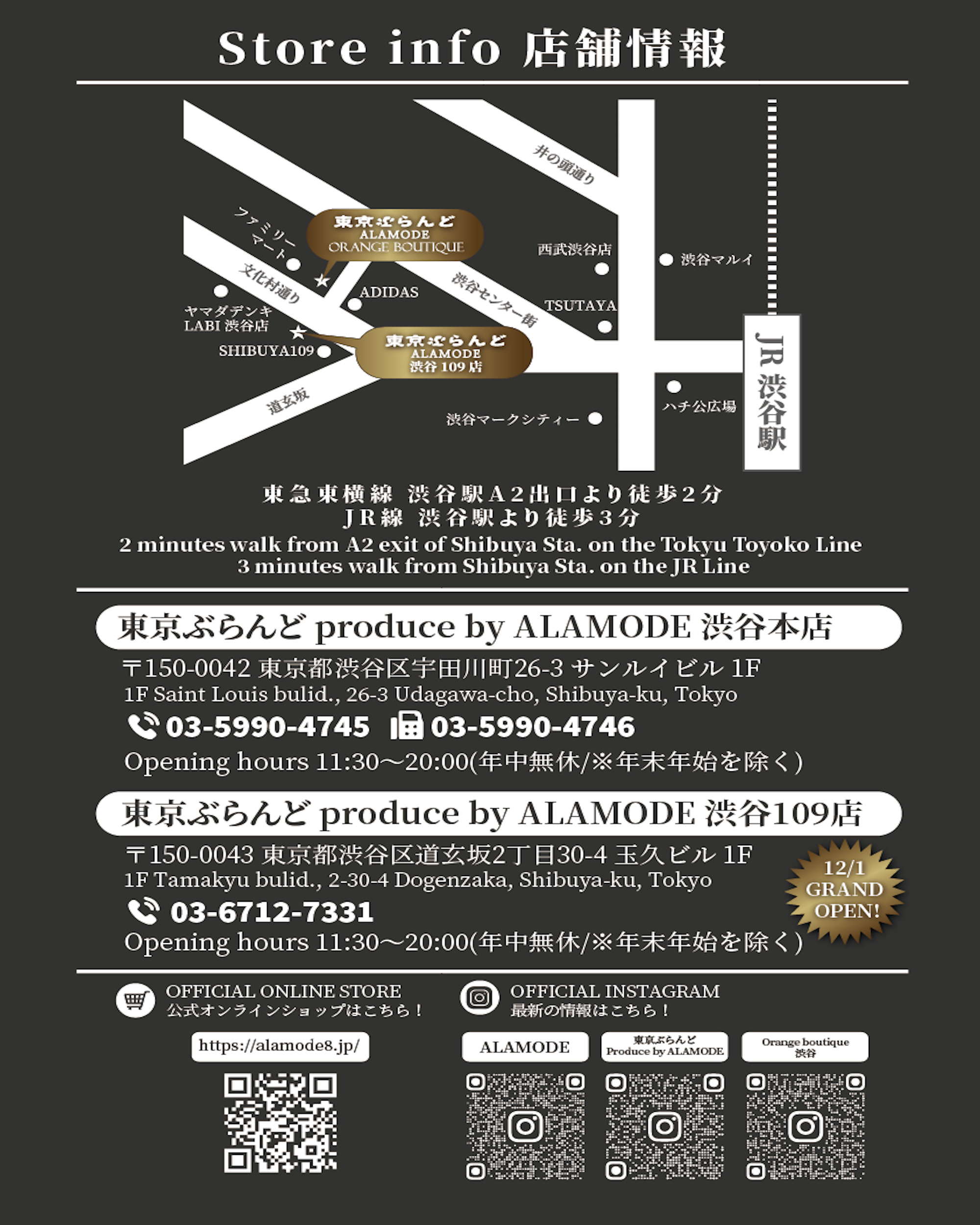 2024年12月1日オープン!!「東京ぶらんどProduceby ALAMODE」渋谷109店