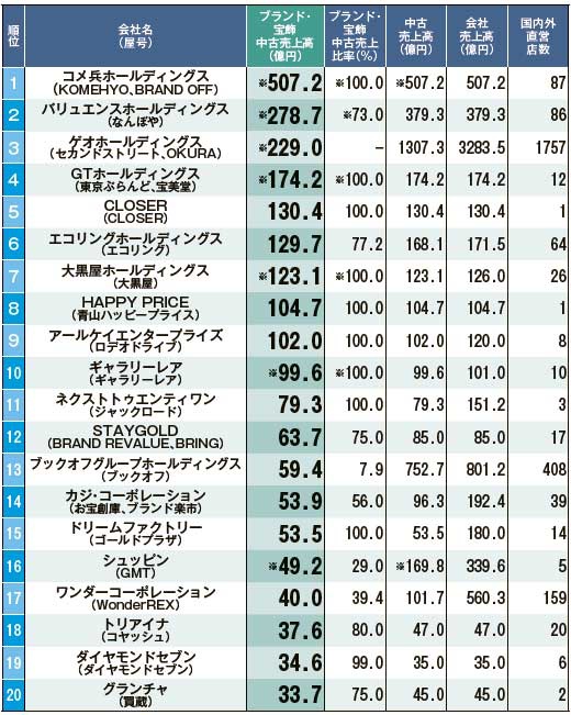 株式会社リフォーム産業新聞社が2021年8月10日に発行されました「リサイクル通信」にて、2020年度「ブランド・宝飾品」の売上ランキングで、当社が第4位であったと発表されました。 以下のリンクよりご確認頂けます。 https://www.recycle-tsushin.com/news/detail_6294.php